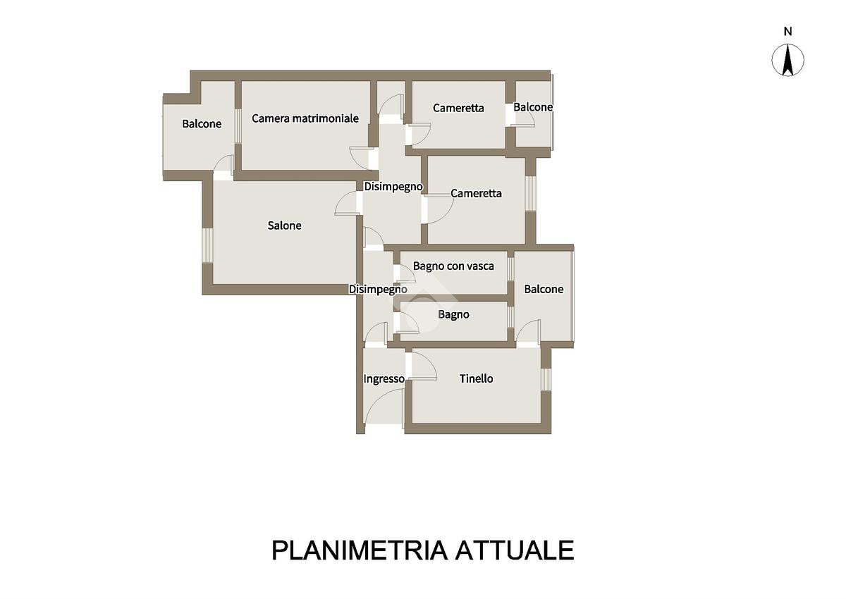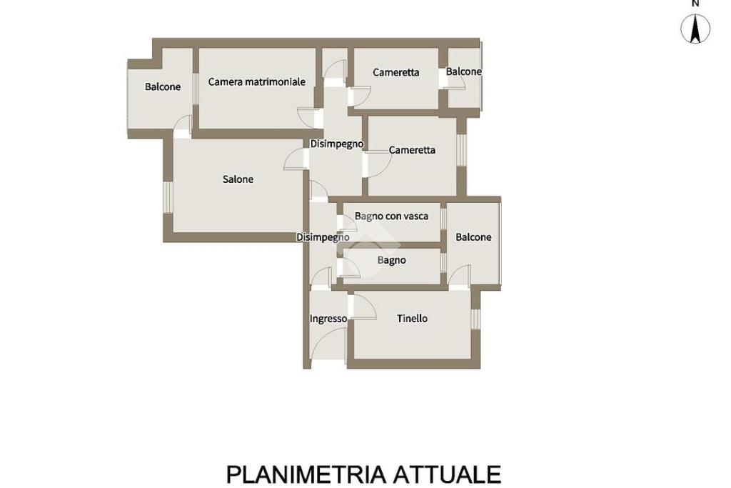 Dal disimpegno accediamo ai due bagni uno con vasca e uno con box doccia, alla camera matrimoniale anch’essa con il suo balcone di pertinenza, una cameretta con balcone e la terza cameretta.