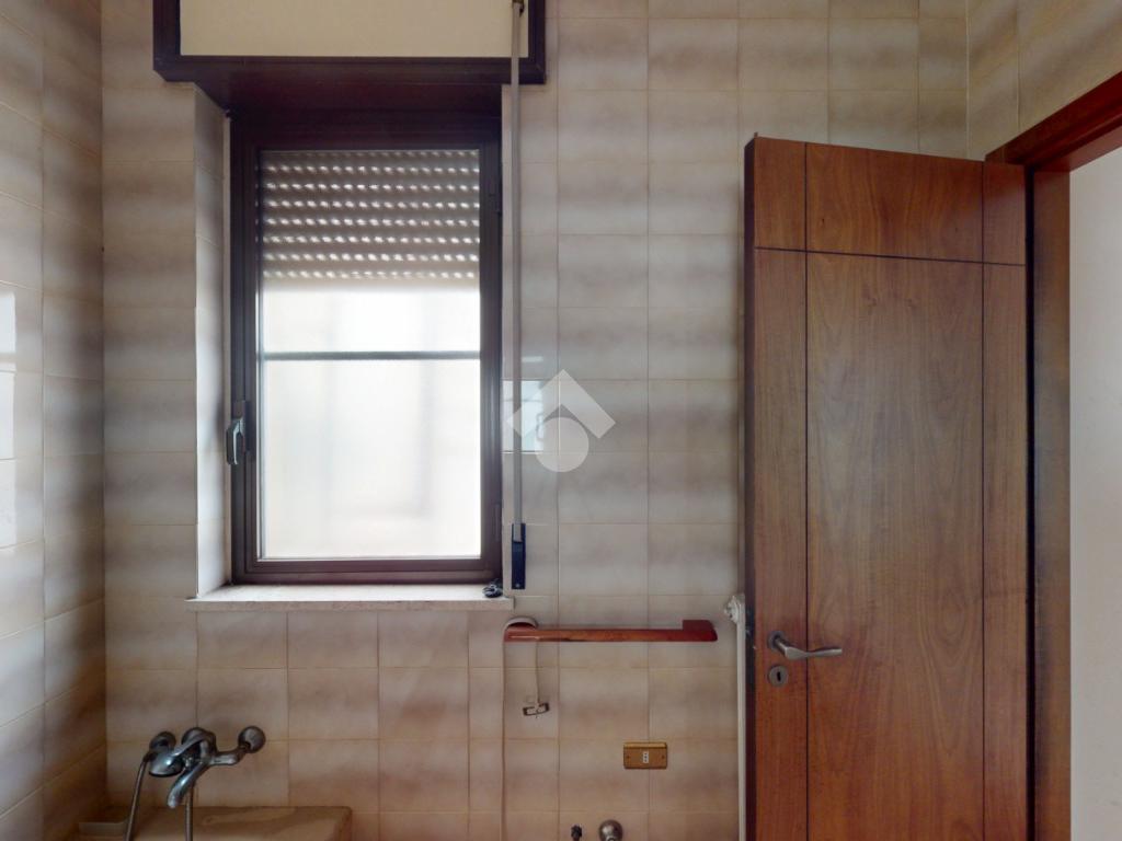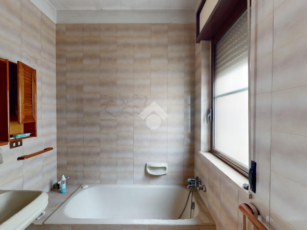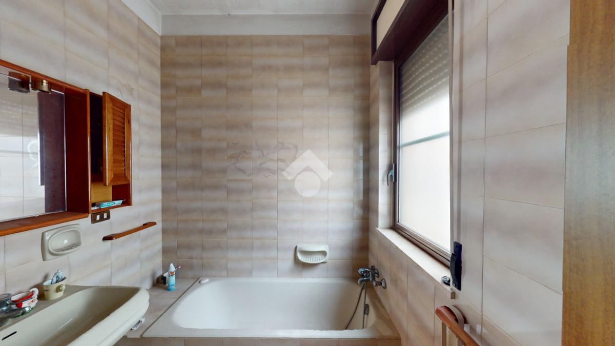 I servizi sono due, bagno di servizio cieco con piatto doccia, mentre il bagno patronale con la vasca.