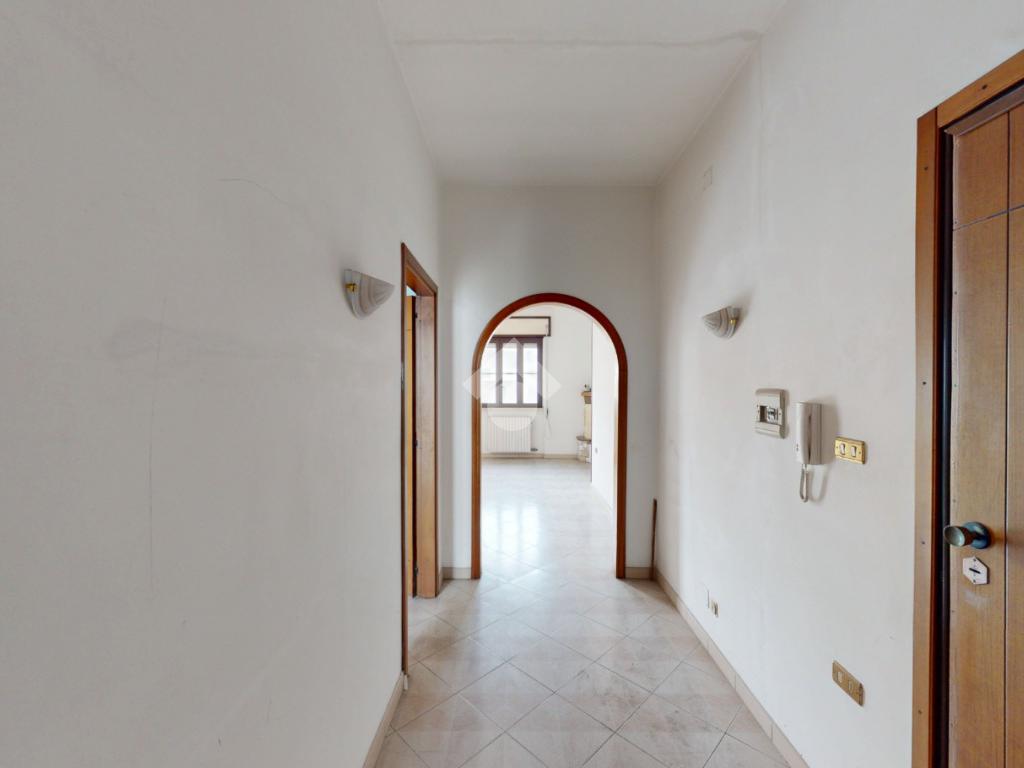 Comodo disimpegno all’ingresso posto a dividere agevolmente la cucina abitabile e l’ampio salone (dotato di camino) , entrambi gli ambienti godono di spazio esterno, cortile vivibile in cucina, mentre balcone con affaccio in Via Osanna per il salone.
